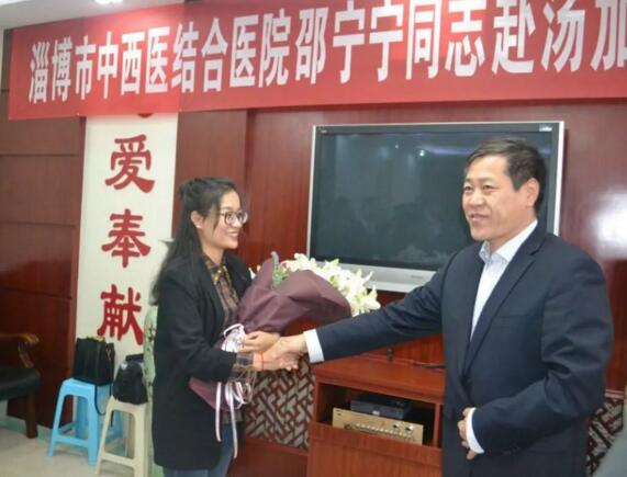 淄博市中西医结合医院领导班子成员,部分科室负责人,邵宁宁及家人近50人参加欢送会。