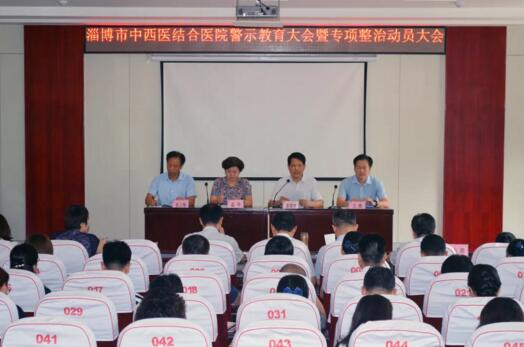 会议由党委书记、理事长、院长彭建林同志主持,党委副书记、纪委书记王凯同志宣读了《关于淄博市中西医结合医院原院长段明福严重违纪违法案件的通报》;党委委员、副院长张上海同志宣读《淄博市中西医结合医院医疗器械采购等重点领域专项整治实施方案》;市卫健委党组成员、副县级干部孟玲讲话,提出要求,最后彭建林同志作表态发言。